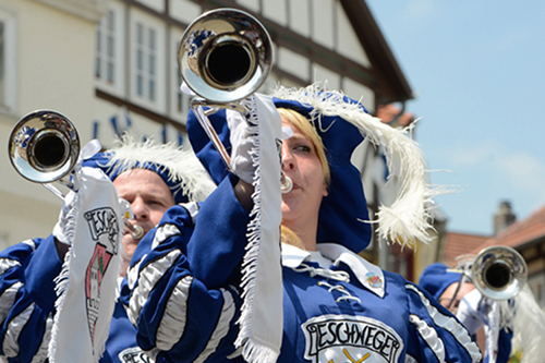 Mit unserer aus der Landsknechtzeit stammenden Marsch- und Festmusik erfreuen wir Festzugbesucher in unserer Heimatstadt Eschwege und über die Kreisgrenzen hinaus.